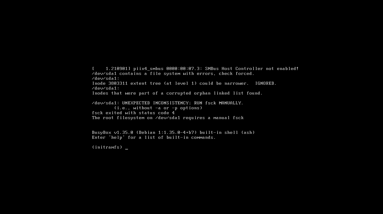 /dev/sda1: UNEXPECTED INCONSISTENCY; RUN fsck MANUALLY.